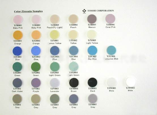 日本東曹彩色氧化鋯樣板