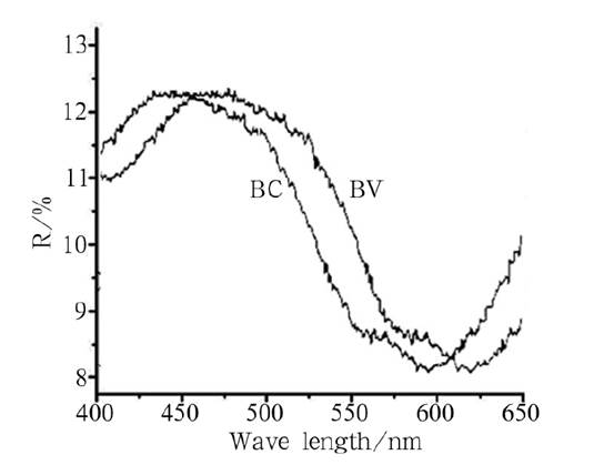 藍(lán)色氧化鋯陶瓷的反射光譜圖